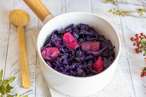 Recette facile de chou rouge aux pommes à l'alsacienne : mijoté à feu doux, parfumé au laurier et clou de girofle. Astuces, variantes et conservation pour un plat pratique et savoureux.
