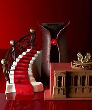 Pierre Marcolini surprend avec une création baroque alliant chocolat rouge et saveurs intenses, inspirée de l'Opéra Garnier. Cette bûche révèle des couches de biscuit au café et crème tiramisu, sublimées par un sabayon de chocolat Chuao.