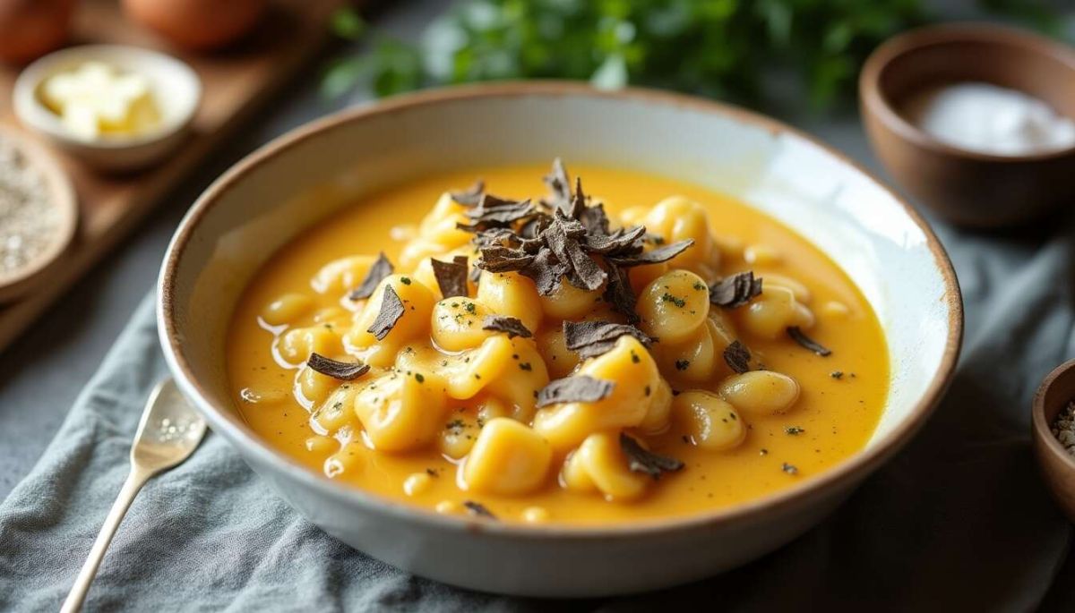 Cette préparation, emblématique de la cuisine française, doit son nom à la richesse de ses ingrédients, notamment lorsqu'on y intègre de la truffe, un produit haut de gamme.