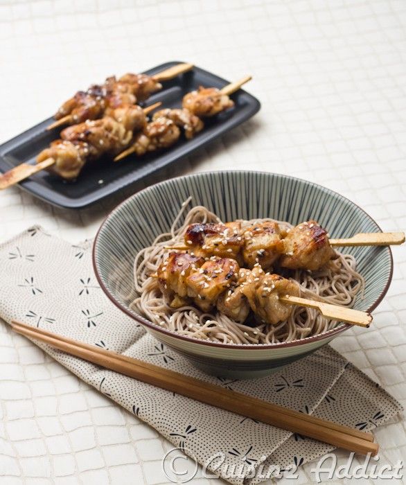 Le résultat ? Des brochettes caramélisées, pleine de saveurs, que j'ai accompagnées de soba sautées à l'huile de sésame. Rapide et exquis, n'est-ce pas ?