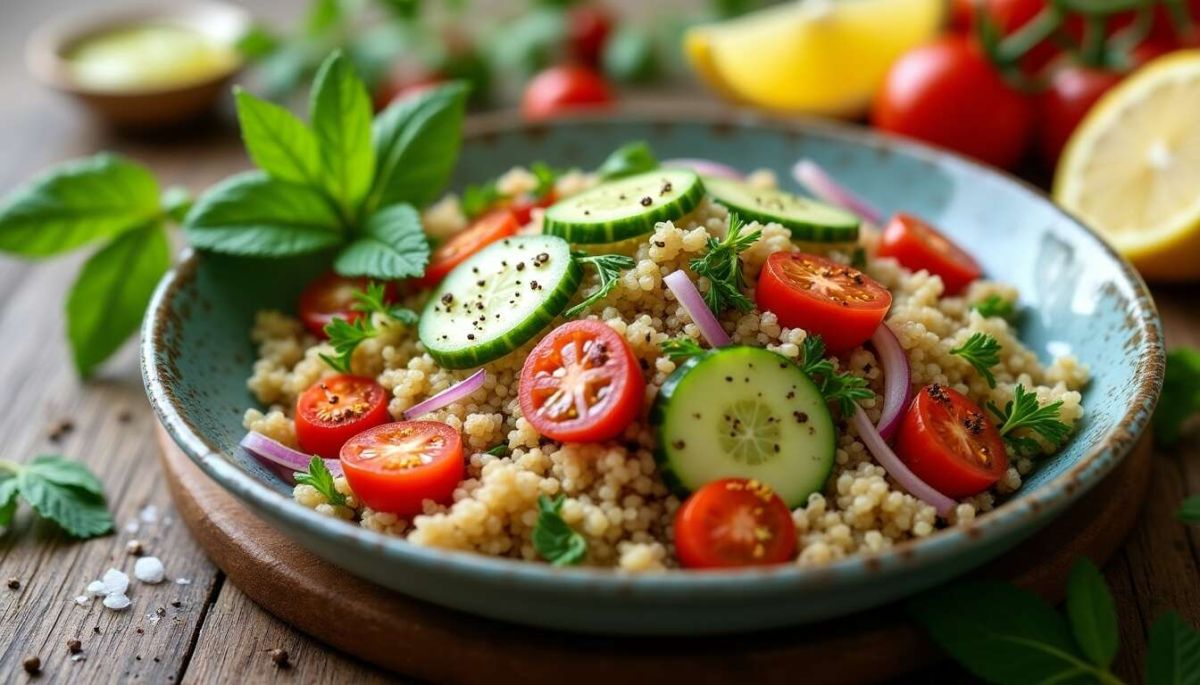 Ce plat traditionnel vient du Moyen-Orient, renommé pour sa simplicité et sa capacité à rafraîchir lors des fortes chaleurs. Le quinoa représente une alternative nutritionnelle idéale aux semoules.