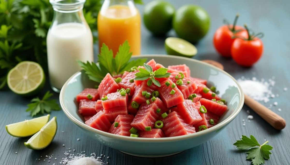 Le ceviche de thon, un plat emblématique d'Amérique latine, est idéal pour égayer vos repas estivaux. Avec ses morceaux de thon marinés, il offre une explosion de saveurs exotiques. Simple et rapide à réaliser, ce délice sera le point d'honneur de vos repas en plein air.