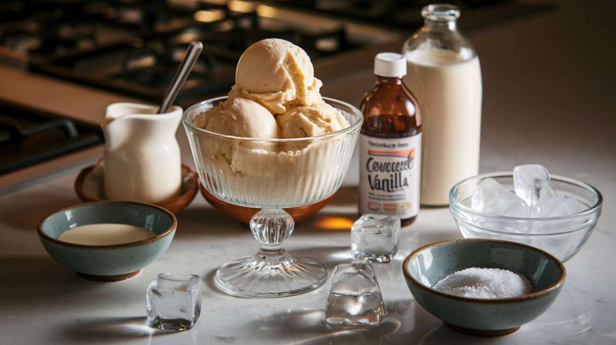 Cette glace vanille, onctueuse et riche, se marie parfaitement avec un thé glacé maison à la pêche, apportant des notes fruitées, ou une eau pétillante infusée à froid, équilibrant la douceur de la glace avec l'acidité des fruits.