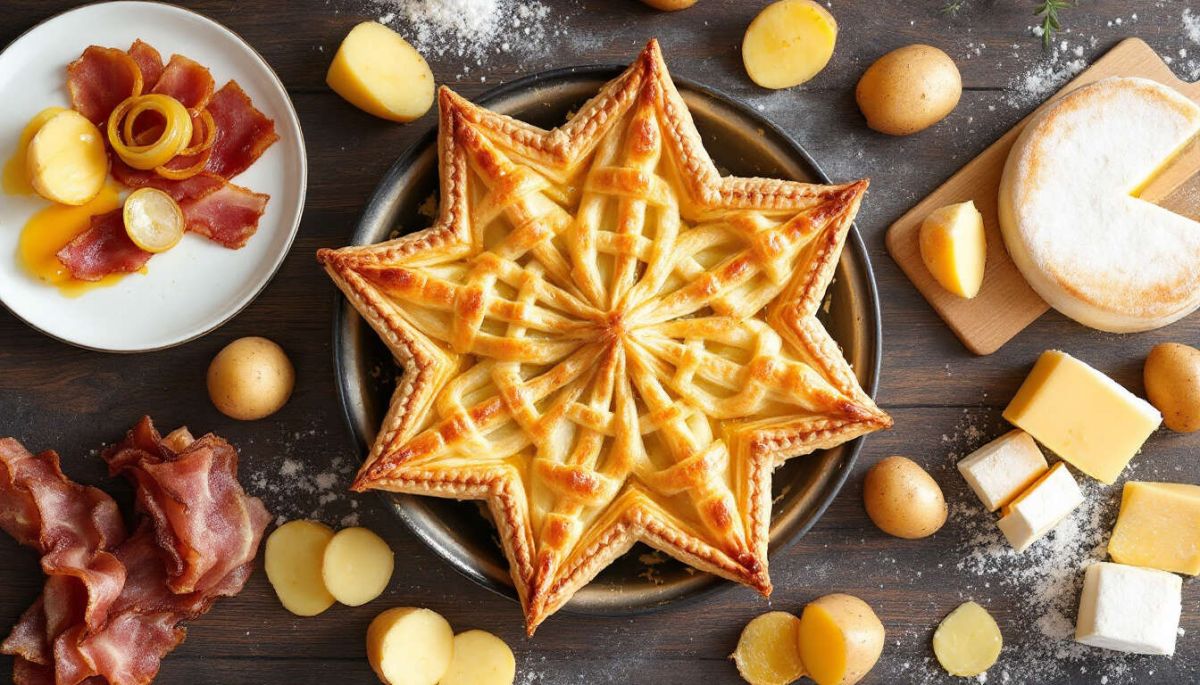La tartiflette est emblématique de la Savoie, utilisant le reblochon comme ingrédient phare. Cette version en tourte apporte une belle texture et un contraste avec le crémeux du fromage.