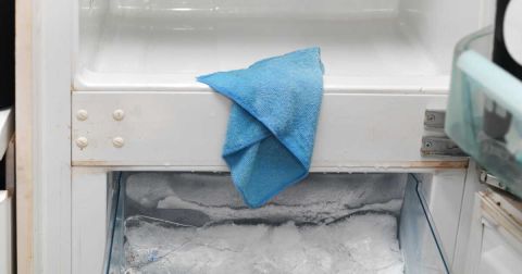 - Débranchez l'appareil et laissez la glace fondre naturellement, en plaçant des serviettes en dessous pour absorber l'eau.