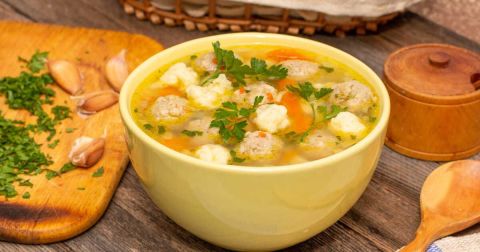 Lorsque la soupe est prête, mixez les légumes pour obtenir une texture lisse, puis remettez cette préparation dans la casserole avec le bouillon. Ajoutez les pâtes, faites cuire jusqu’à ce qu’elles soient al dente et incorporez délicatement les boulettes dorées à la soupe.