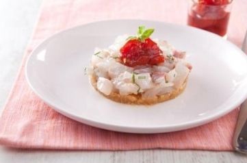 Offrez à vos convives un plat frais et audacieux : un tartare de daurade accompagné de sablé au parmesan et d'un chutney surprenant de pastèque. Cette recette raffinée met en avant la subtilité des saveurs marines associées à une touche sucrée et acidulée.