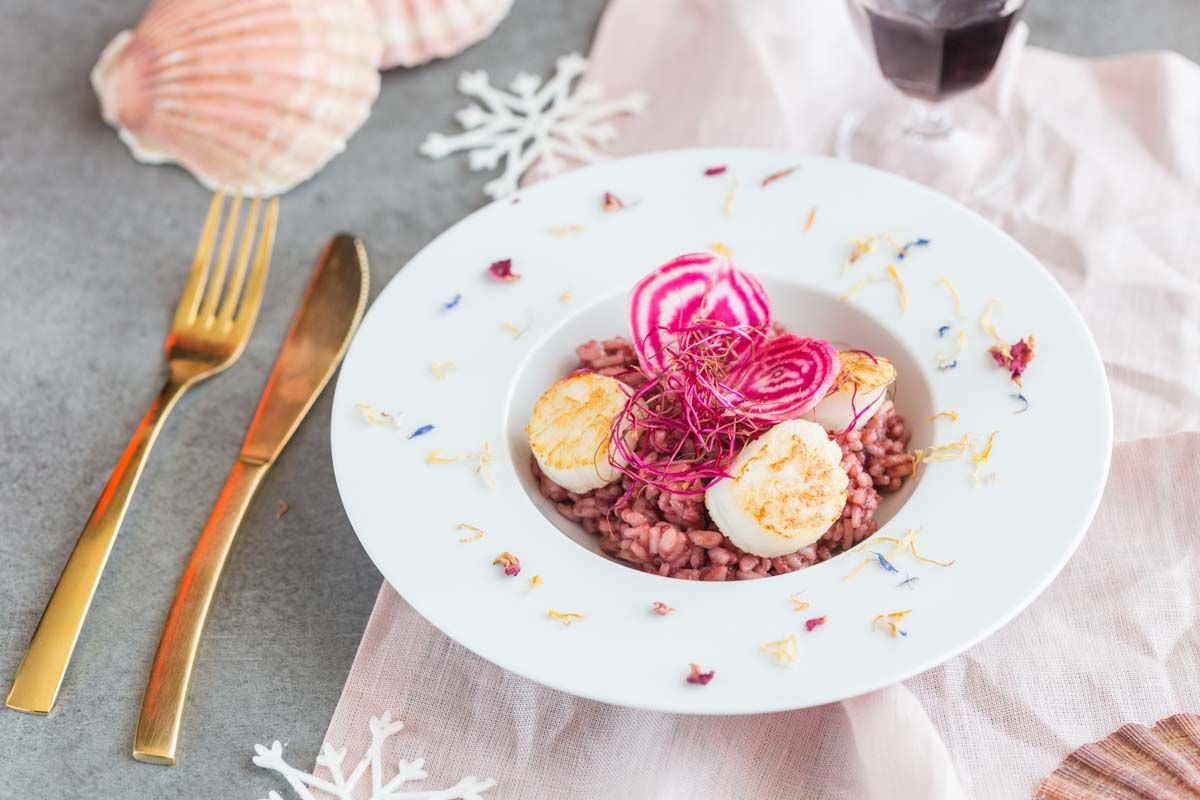 Recette : Risotto à la betterave et aux noix de Saint-Jacques