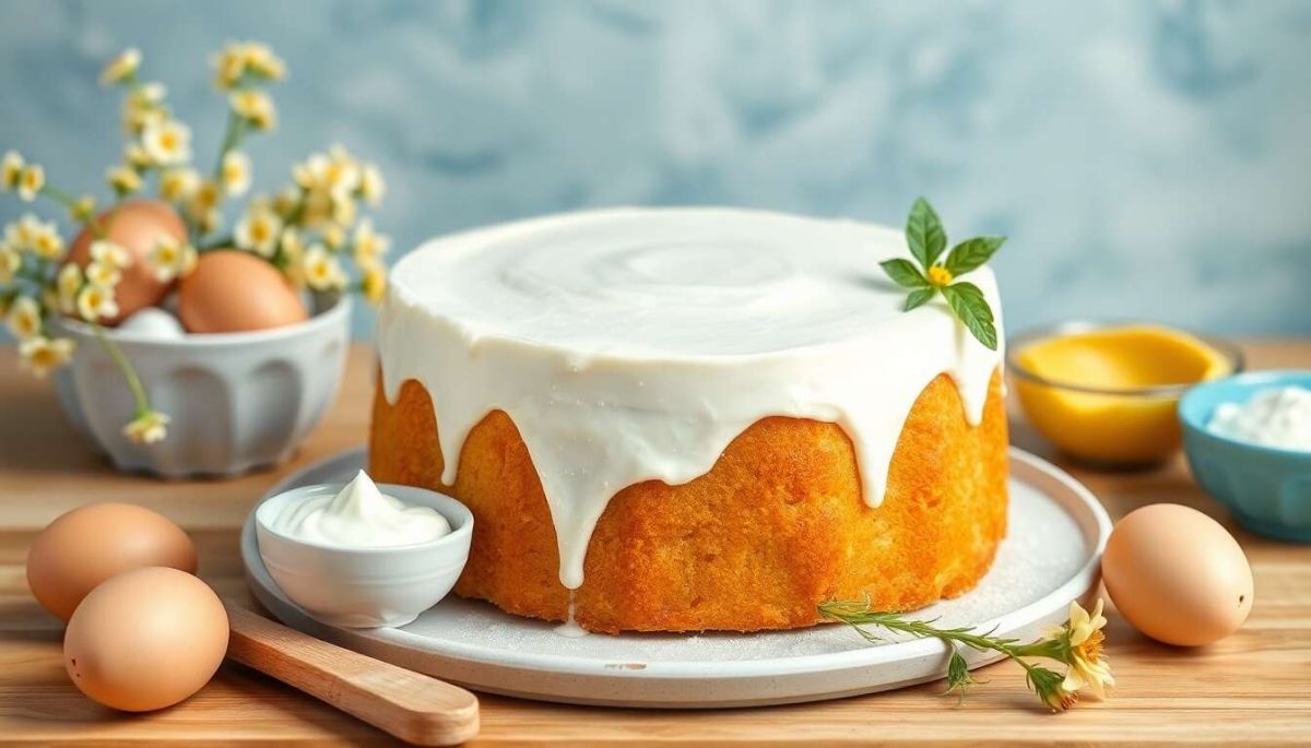 Un verre de lait d’amande ou un thé vert léger s'accorderont parfaitement avec ce gâteau au yaourt sans gluten.